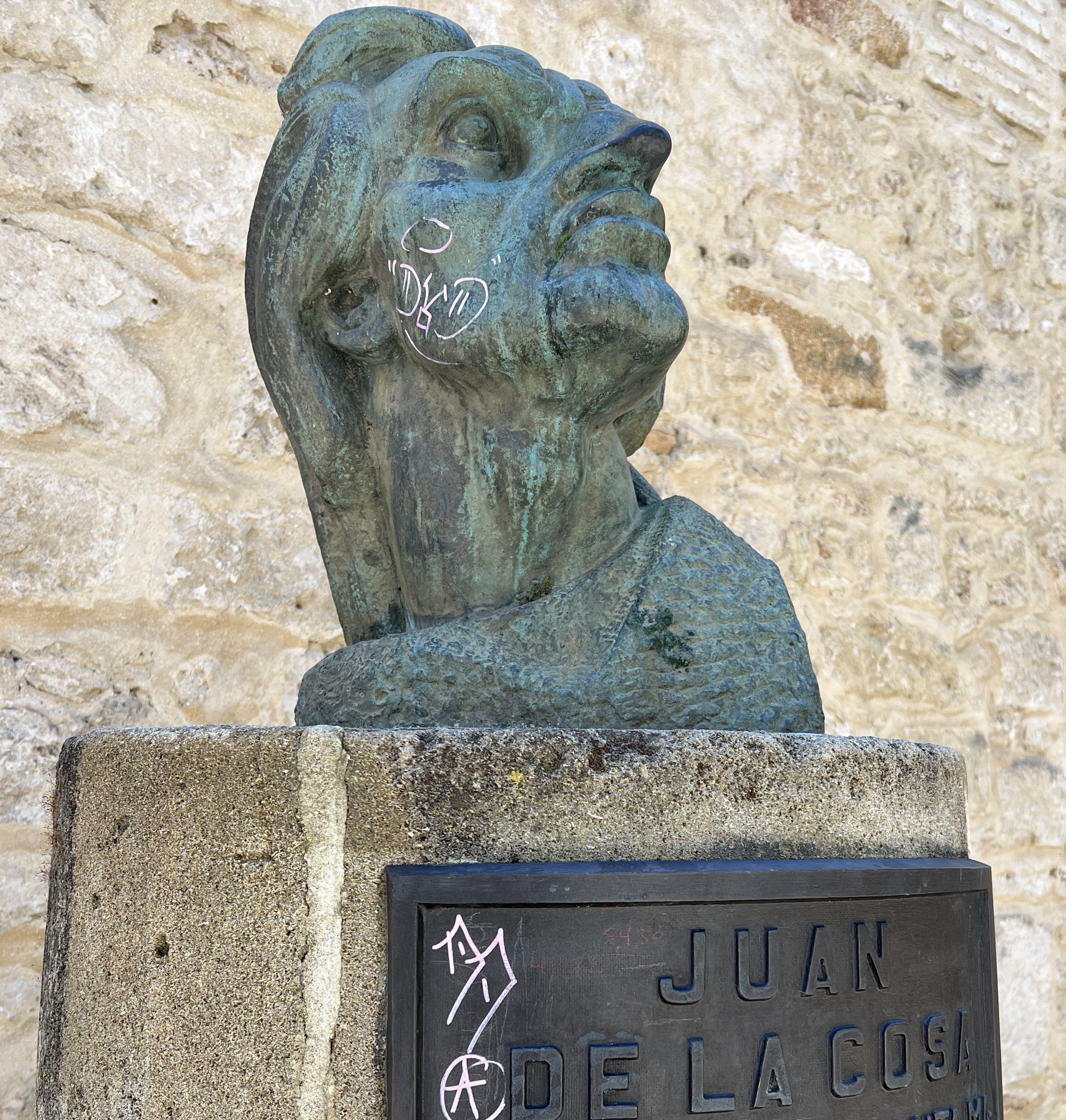 Este busto rinde homenaje al destacado navegante y cartógrafo cántabro, Juan de la Cosa, reconocido por su participación en los viajes de Cristóbal Colón y por elaborar en 1500 el primer mapa conocido que representa el continente americano. El busto no sólo conmemora su legado, sino que también sirve como punto de interés en la ruta de la ciudad, invitando a locales y visitantes a reflexionar sobre el papel de El Puerto en los inicios de la globalización.
