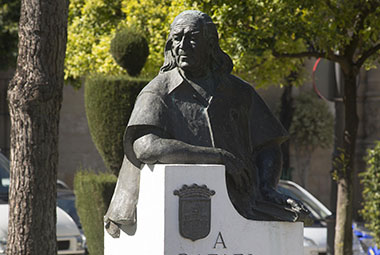 Honra al rey castellano del siglo XIII, quien reconquistó la villa musulmana de Al-Qanatir en 1260, renombrándola como Santa María del Puerto en 1281. Ese mismo año otorgó la Carta Puebla, incorporando la ciudad a la Corona de Castilla. Además, transformó la mezquita musulmana en iglesia cristiana, hoy el Castillo de San Marcos. Alfonso X es también conocido por sus Cántigas de Santa María, en las que recoge los milagros de la Virgen María. Este busto es un homenaje a su legado histórico y cultural en la ciudad
