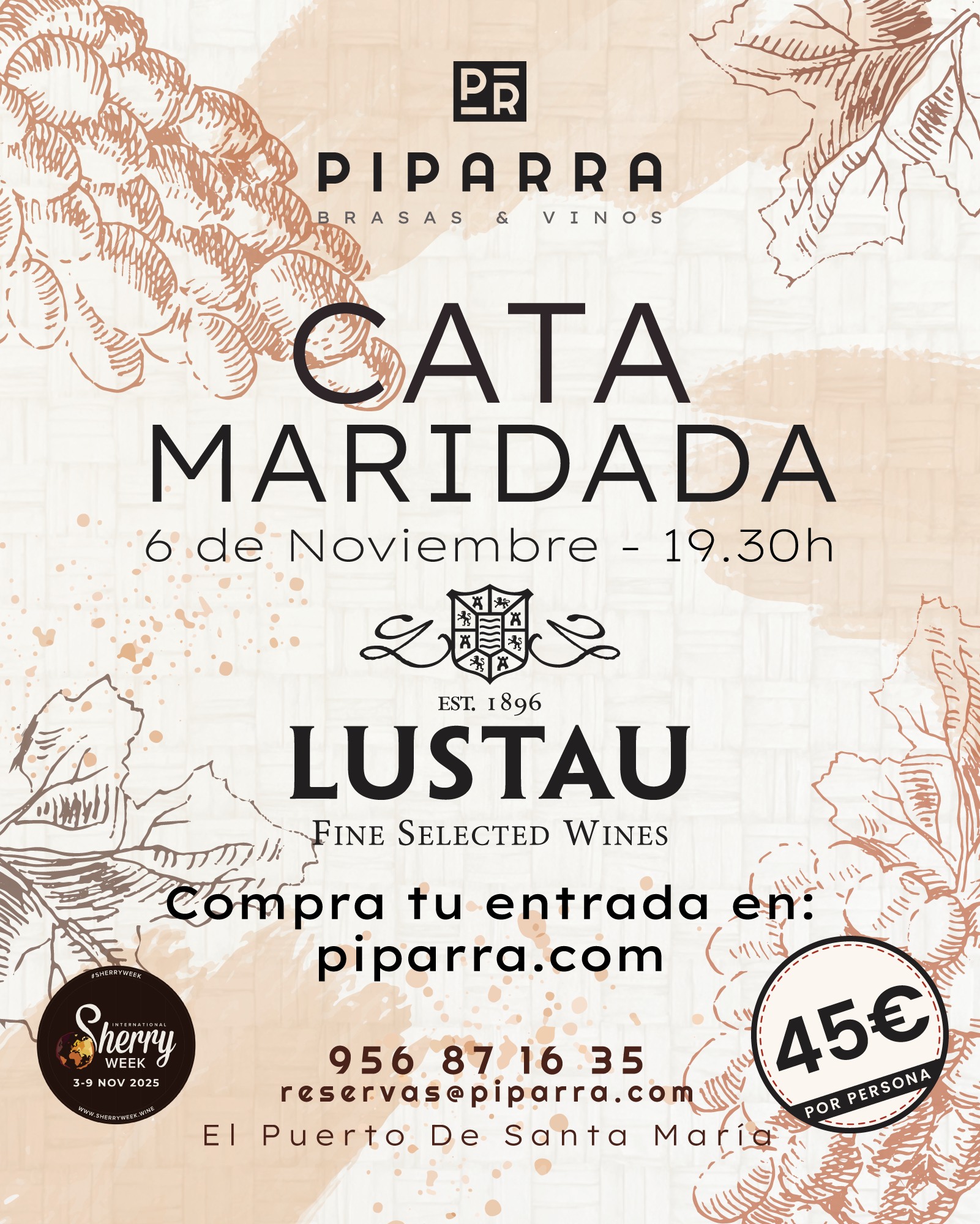 Precio: 45€ por persona - Plazas limitadas - Tel: 956 871 635 - reservas@piparra.com