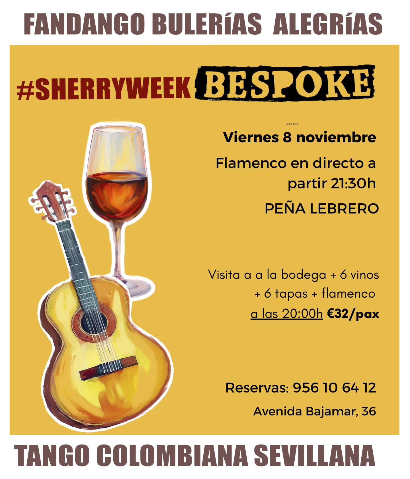 - Completa tu experiencia haciendo la visita a la Bodega Gutiérrez Colosía, con un Sherry Cocktail especial de bienvenida y después toma 6 vinos y 6 tapas en Bespoke, terminando con el flamenco en vivo.